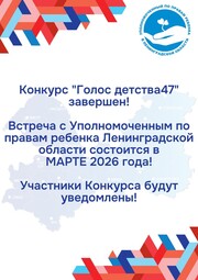 Дорогие участники, родители и педагоги❗ От всей души благодарим вас за яркое и вдохновляющее участие в конкурсе #ГолосДетства47, который проводился Уполномоченным по правам ребёнка в Ленинградской области.